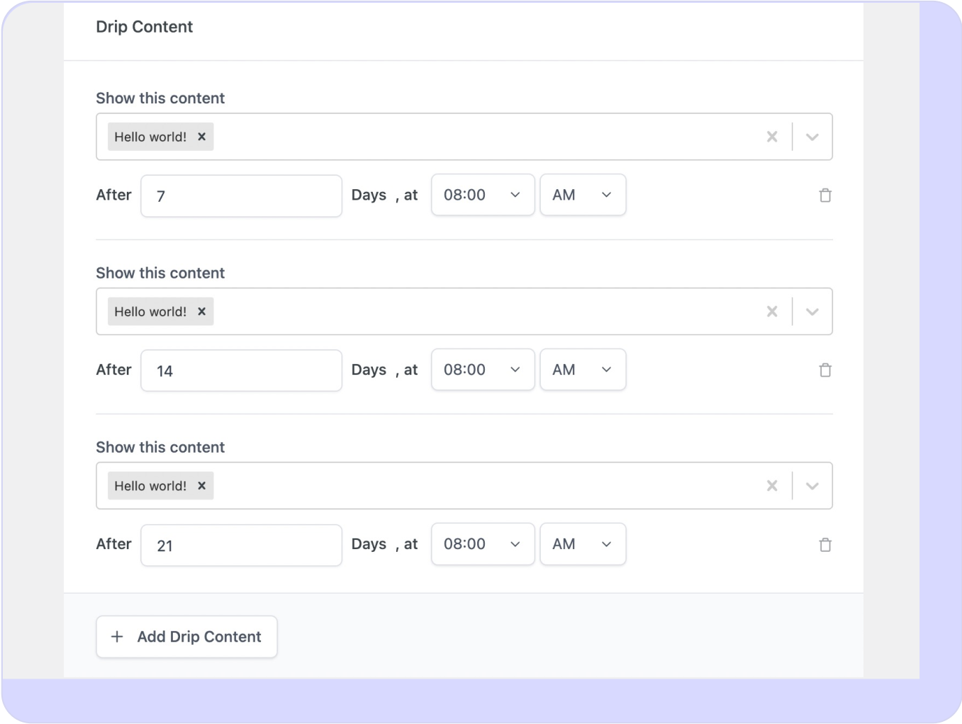 Drip feed any content on your site